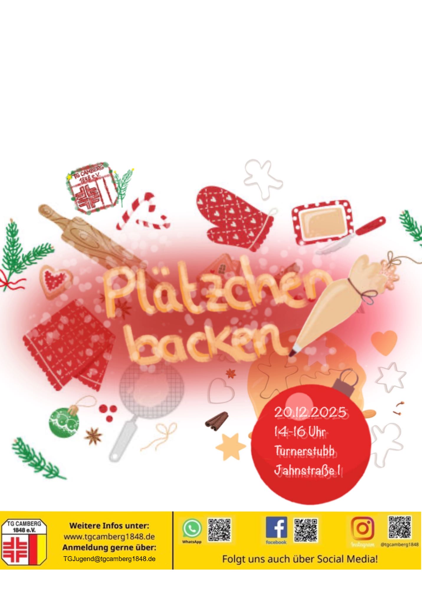 Wir laden euch, eure Eltern und eure Freunde am Samstag, 20.12.2025 zum gemeinsamen Backen in die Turnerstubb (Jahnstraße 1) ein.