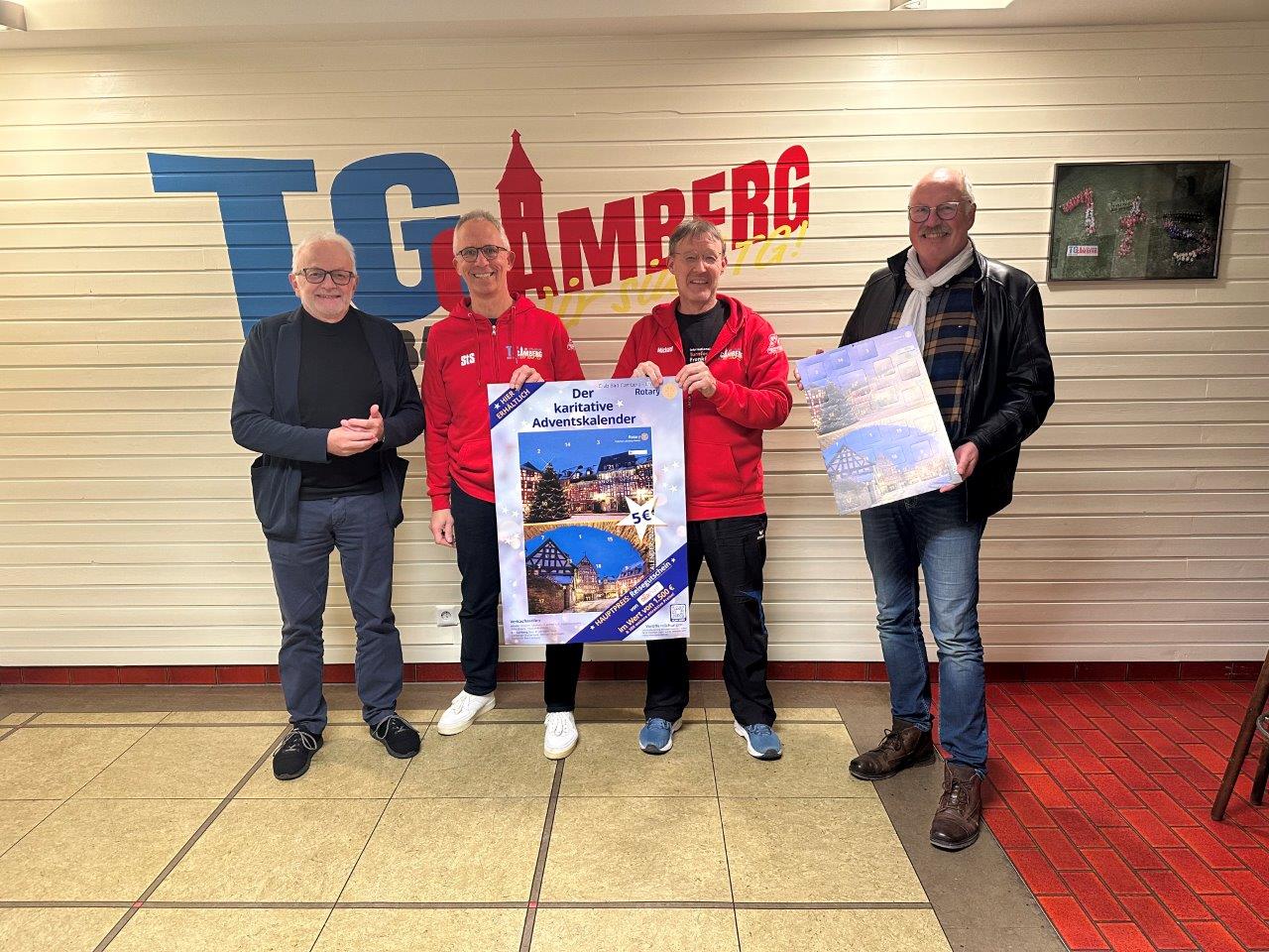 Wolfgang Wolter (links) bei der Vorstellung der Rotary-Kalenders 2025 mit Vorstandsmitgliedern der TG Camberg