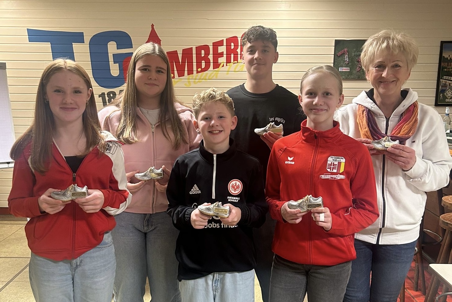 Vergangenen Donnerstag, 11.12.2025 veranstaltete die Leichtathletikabteilung der TG Camberg zum Saisonabschluss eine kleine Weihnachtsfeier für jung und alt mit Pizzaessen, einer Diashow und freiem Spieletraining. Im Zuge dessen wurden auch die erfolgreichsten Sportlerin und Sportler der Saison 2025 ausgezeichnet. Die Jüngsten, der TG-Nachwuchs im Alter von 5 bis 9 Jahre erhielt für die erfolgreichste Teilnahme an den KiLa-Cups jeder eine Medaille. Bei den älteren Jahrgang standen die mit Spannung erwarteten Einzelehrungen an. Mit Mila Hofmann und Lennox Rath wurden bei der U12 die ersten Auszeichnungen vergeben. Beide hatten erfolgreich an den Kreismeisterschaften teilgenommen. Überdies ist Mila in der Kreisbestenliste im 50 m Lauf unangefochten Spitzenreiterin. Bei den 12 bis 13-jährigen erhielten dieses Jahr die Auszeichnung Luna Rath und Marian Duma. Beide waren dieses Jahr erfolgreich an den Hessenmeisterschaften gestartet und durften dort erstmals Siegertreppchenluft schnuppern. Bei der U16 war die Wahl der erfolgreichsten Sportlerin und des erfolgreichsten Sportlersnicht schwer. So wurden beide jüngst in den hessischen Landeskader Wurf aufgenommen. Die Rede ist natürlich von Mina Dehbashi und Vincent Wehlus. Der 15-jährige Vincent war im Sommer bei den deutschen Meisterschaften im Speerwurf gestartet und ist 2025 mit einer persönlichen Bestleistung von 52,70m auf Platz 10 der deutschen Bestenliste der M15 zu finden. Mina wurde auf Grund ihre hervorragenden Leistungen im Kugelstoßen (PB 10,72m), dem Diskuswurf (PB 32,38m) und dem Hammerwurf (PB 34,70m) ausgezeichnet. Die erst 14-jährige räumte in der vergangenen Saison 2025 auf Landesebene sämtliche Titel in diesen Disziplinen ab und war darüberhinaus auch auf süddeutscher Ebene sehr erfolgreich. Wioletta Tasch kann einmal mehr stolz auf ihre zwei Schützlinge sein und darf sich gleichzeitig auch selbst als erfolgreichste Sportlerin 2025 der Masters feiern. Sie ist ein großes Vorbild für ihre Athletin und Athleten, so ist sie selbst bei den deutschen Winterwurfmeisterschaften im Kugelstoßen Silbermedaillengewinnerin geworden. Neben Wiola wurde auch Frank Loeven bei den Masters ausgezeichnet. Dieser stellt neben seinen eigenen sportlichen Erfolgen 2025 auch eine tragende Säule der Leichtathletikabteilung dar. Studienbedingt konnten an der Ehrung die Sportler des Jahres der U18 und der U20, Niklas Janz, Lennart Bessems und Johann Escher nicht daran teilnehmen. Niklas und Johann hatten 2025 mit ihren beeindruckenden Leistungen im Mittelstreckenbereich auf sich aufmerksam gemacht. So stellte Johann beim heimischen Laufabend in Bad Camberg Sportzentrum im August vor Studienstart noch einen neuen Streckenrekord über die 5000 m auf.