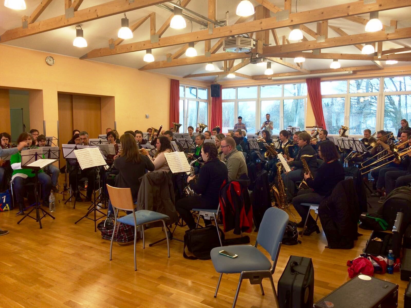 Bis zu diesem Zeitpunkt kannte ich keines der Stücke, die ich an diesem Wochenende spielen sollte. In drei Proben lernte ich drei Dirigenten und sechs verschiedene Stücke kennen. Am Nachmittag dann die erste gemeinsame Probe. Es ist schon beeindruckend mit über 50 anderen Musikern zusammenzuspielen!