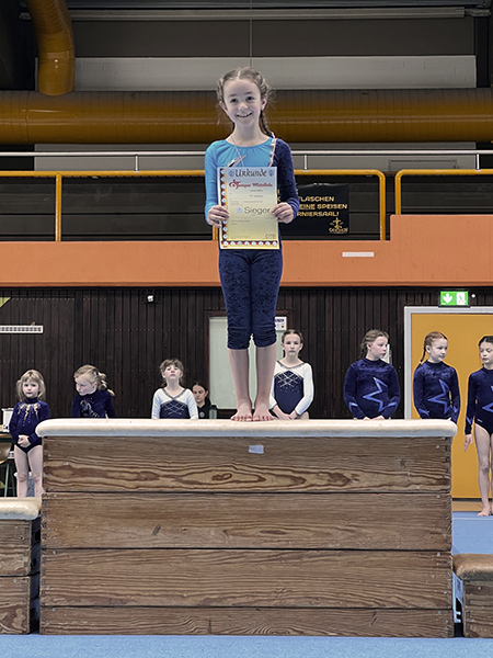 Da Lotte noch nicht so lang bei uns war, war ein schnelles Einsteigen in die P4 bei starker Konkurrenz von 29 Turnerinnen etwas schwieriger, aber sie hat sich tapfer durchgeschlagen und ihre Leistung (P3) seit dem Mannschaftswettkampf in September 2024 deutlich verbessert.