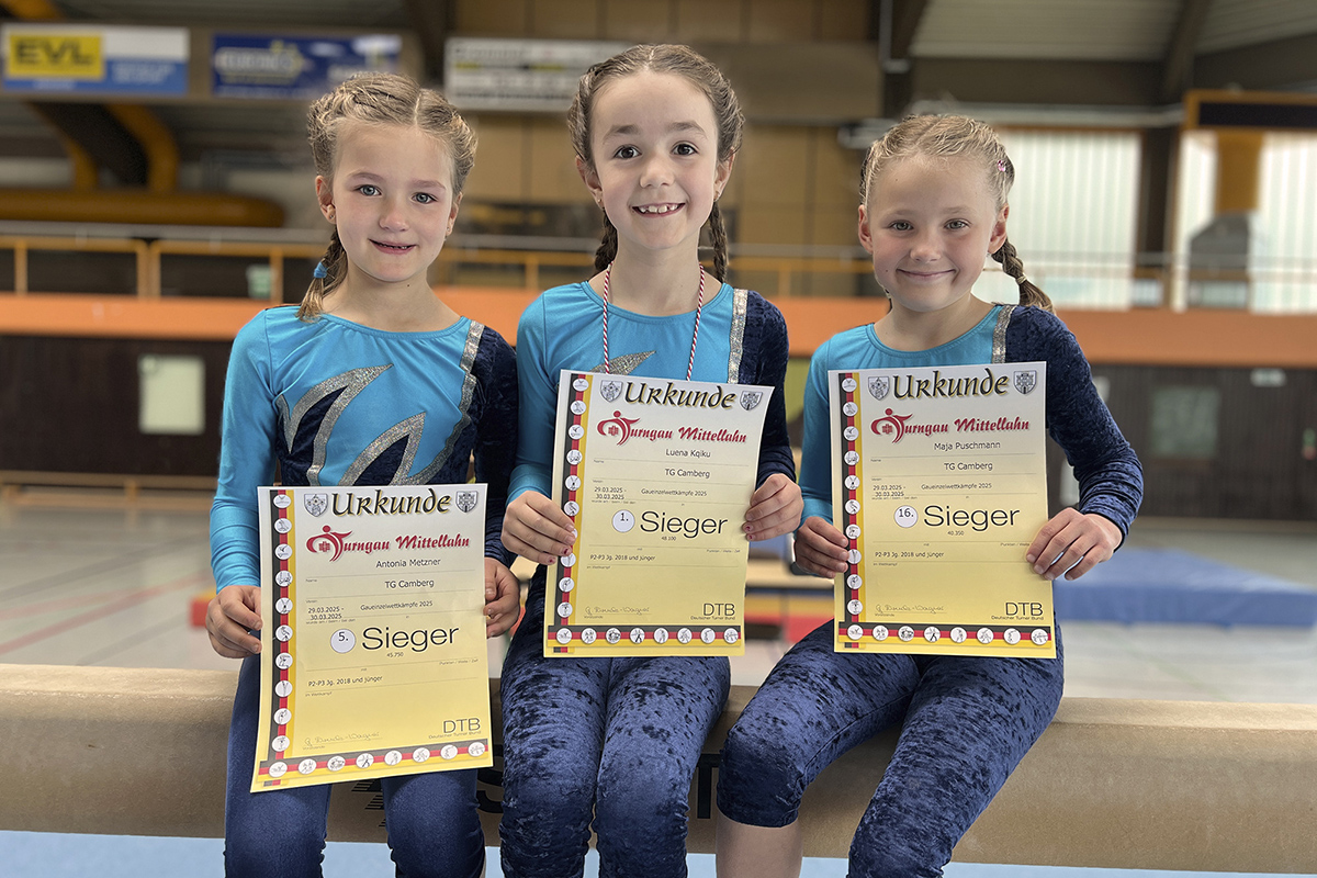 Wie letztes Jahr sind wir auch dieses Jahr beim Gau-Einzelwettkampf am 29./30. März 2025 in Limburg gestartet – aufgeteilt in 2 Riegen. Es sind diesmal nicht alle beim Wettkampf gestartet und da unsere beiden Mädels Lotte und Juli 2017 geboren sind und somit nicht beim Rest der Tiger mitlaufen durften, konnten sie aber mit den ihnen bekannten Gesichtern der „TG Mäuse“ mitlaufen und viel Spaß haben.